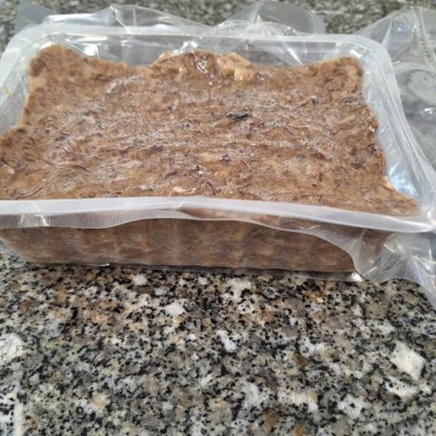 Farce de porc assaisonnée avec du sel, poivre, ail, échalote, conditionnée sous vide